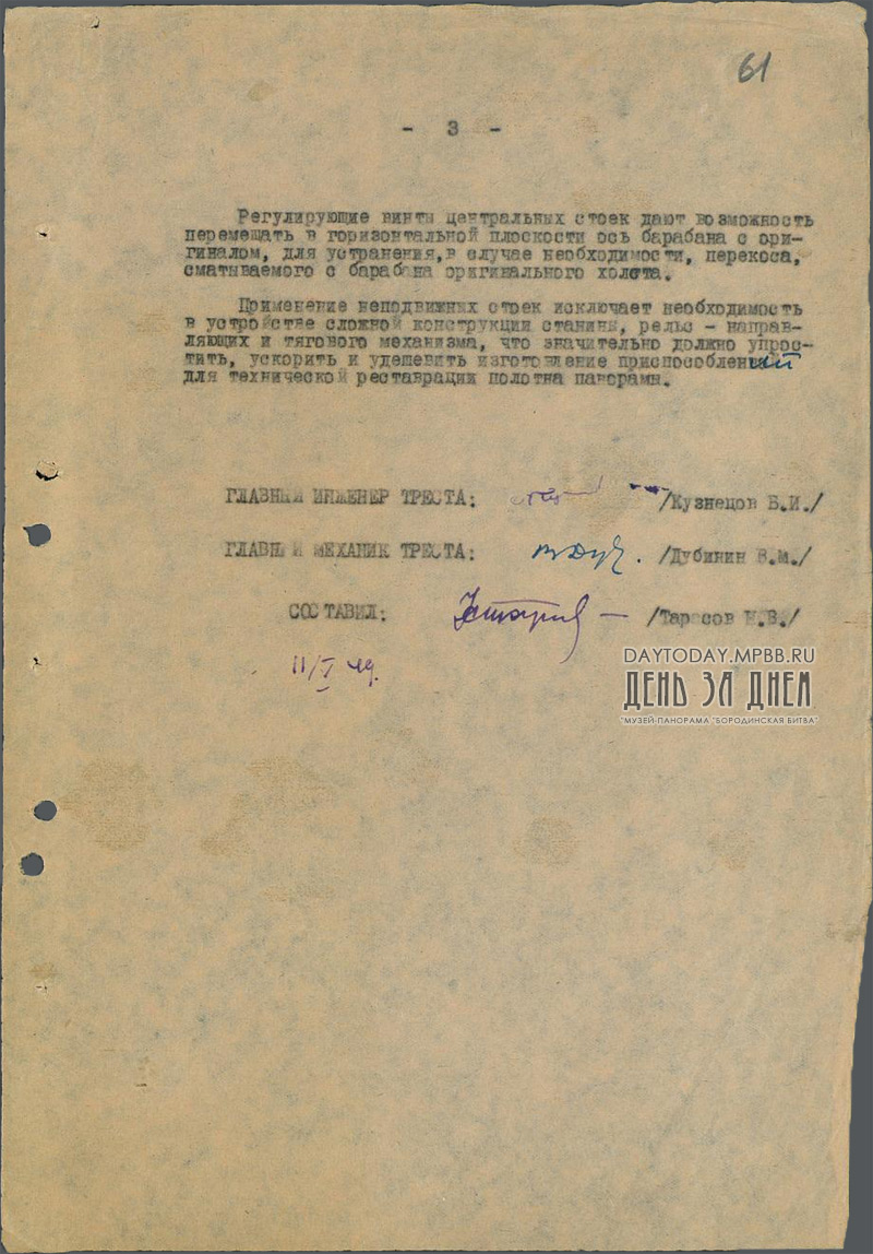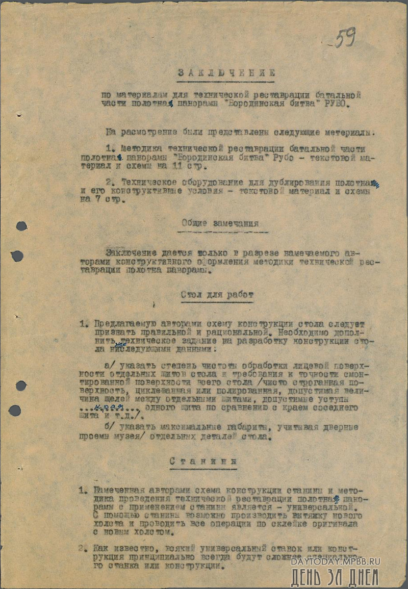 Заключение по технической реставрации батальной части полотна панорамы Рубо «Бородинская битва»