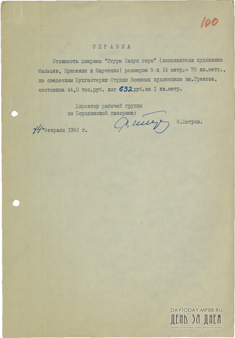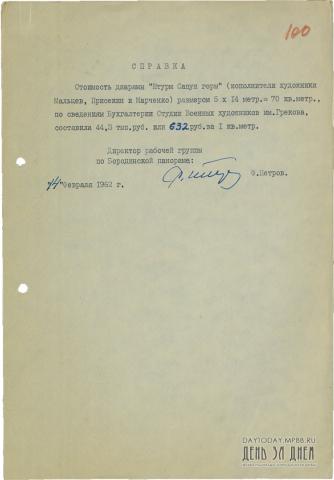 Справка о стоимости панорамы «Штурм Сапун-горы»