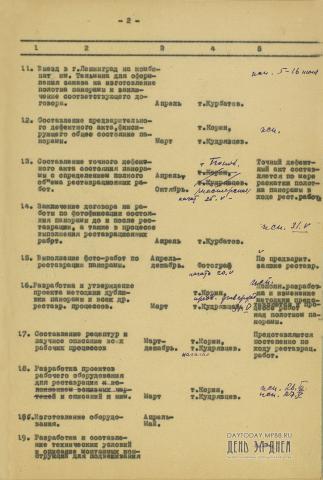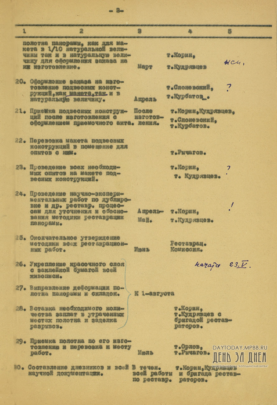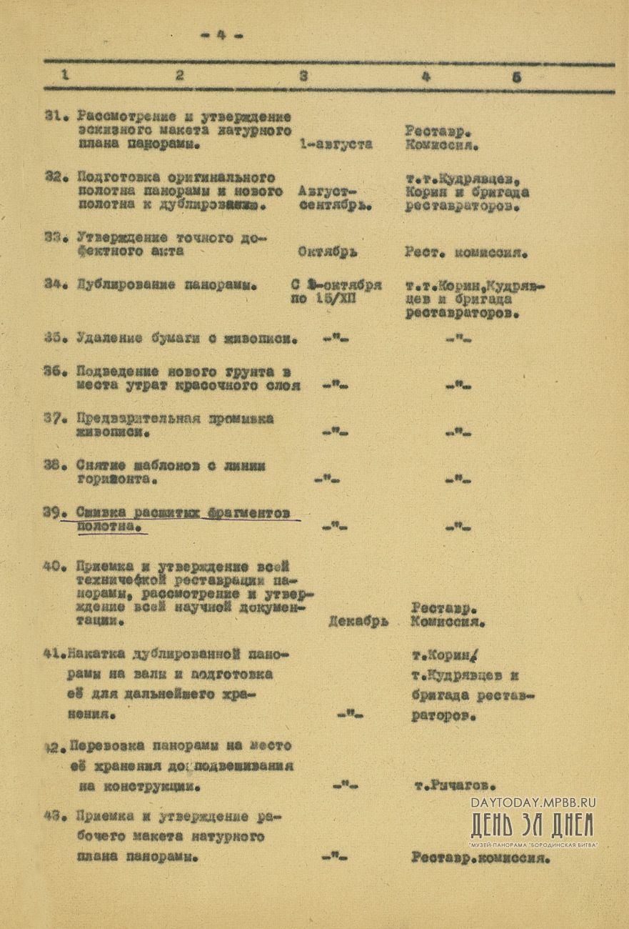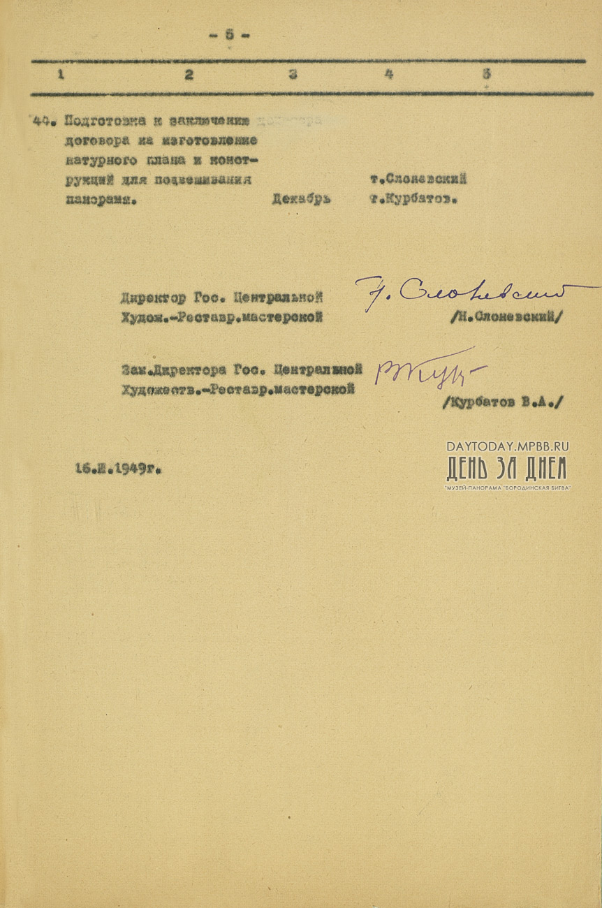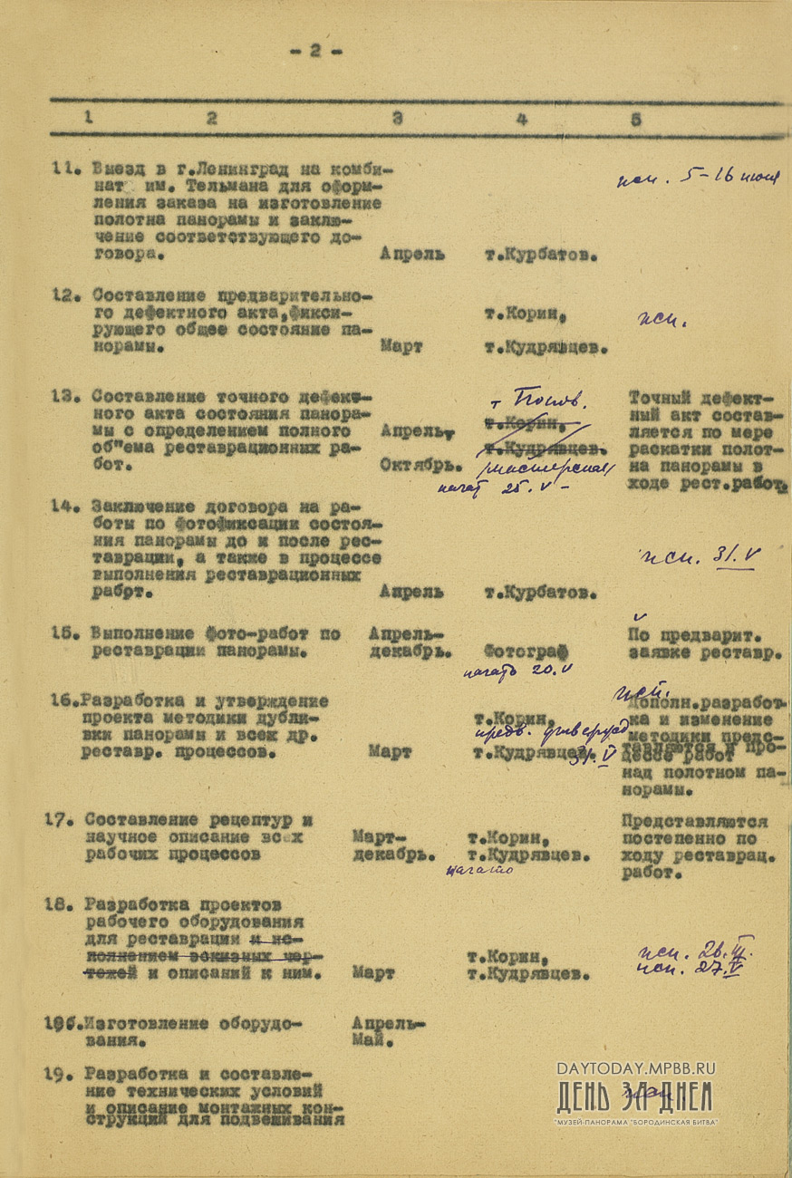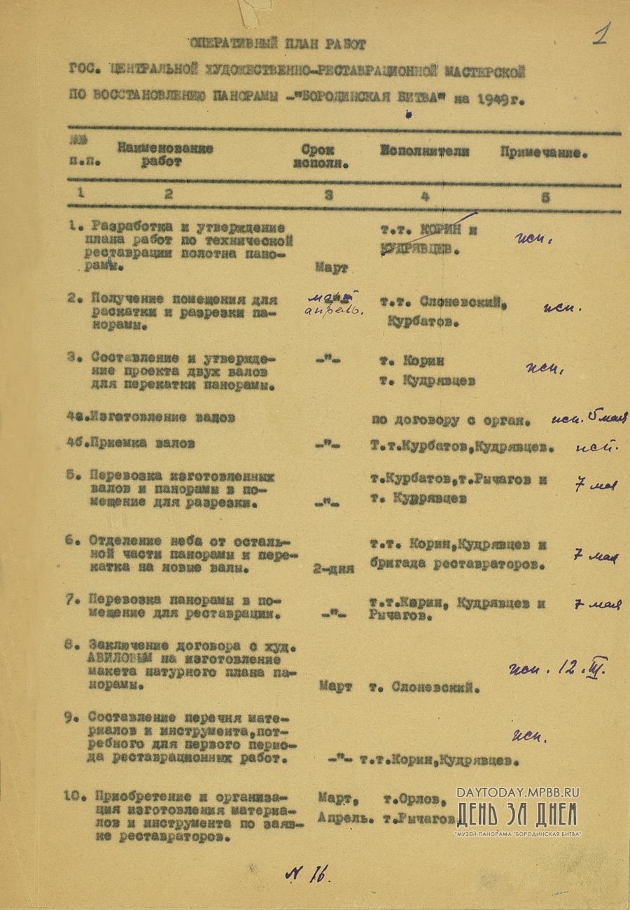Оперативный план работ Государственной Центральной художественно-реставрационной мастерской по восстановлению панорамы «Бородинская битва» на 1949 год