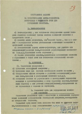 Программное задание на проектирование зонта-рефлектора, монорельса и рельсового пути для передвижки эшафотажа