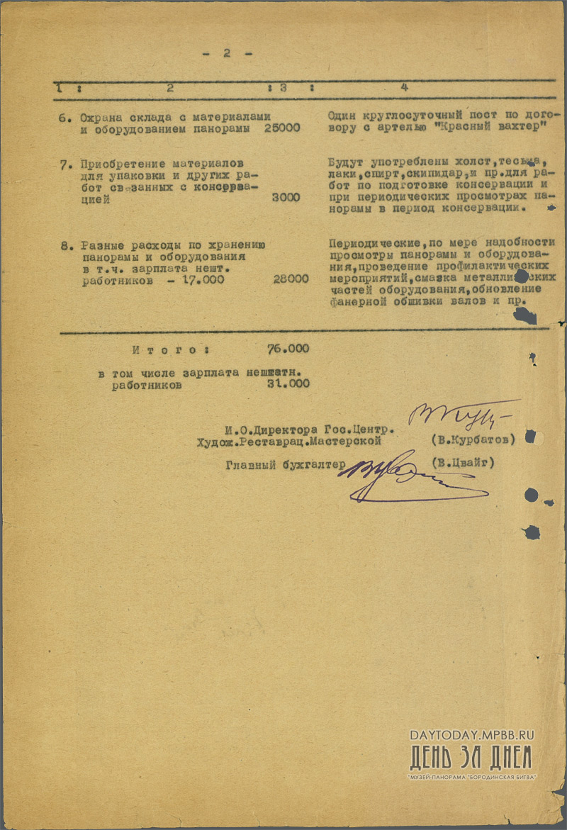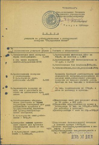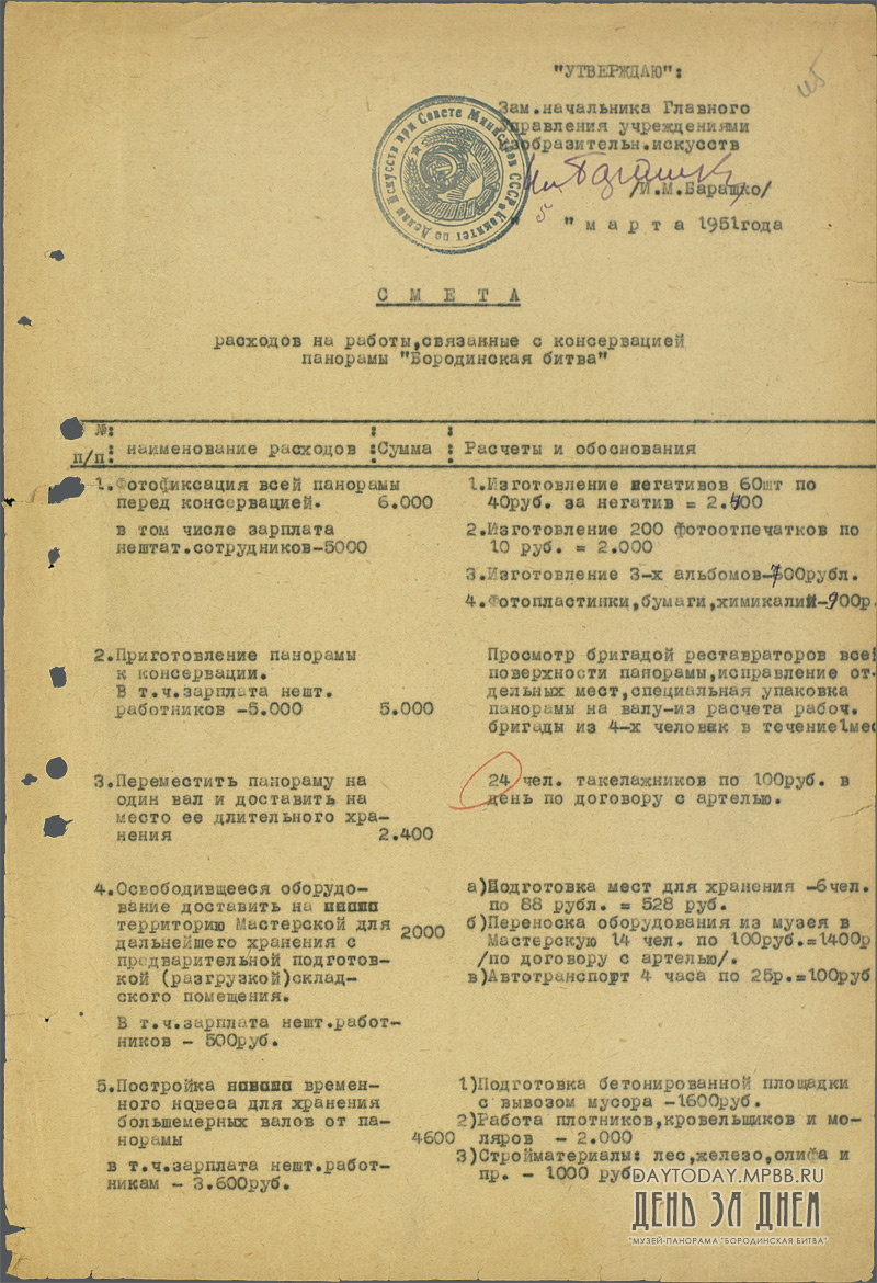 Смета расходов на работы, связанные с консервацией панорамы «Бородинская битва»