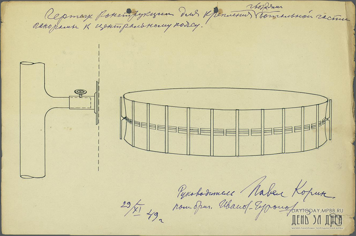 Чертёж конструкции для крепления гвоздями батальной части панорамы к центральному поясу