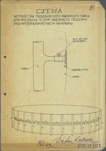 Схема устройства раздвижного фанерного пояса для крепления гвоздями средней (батальной) части панорамы