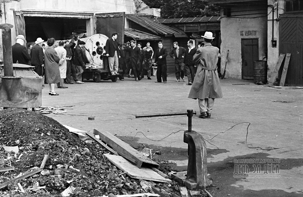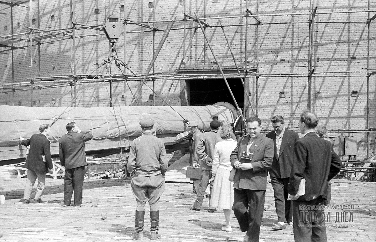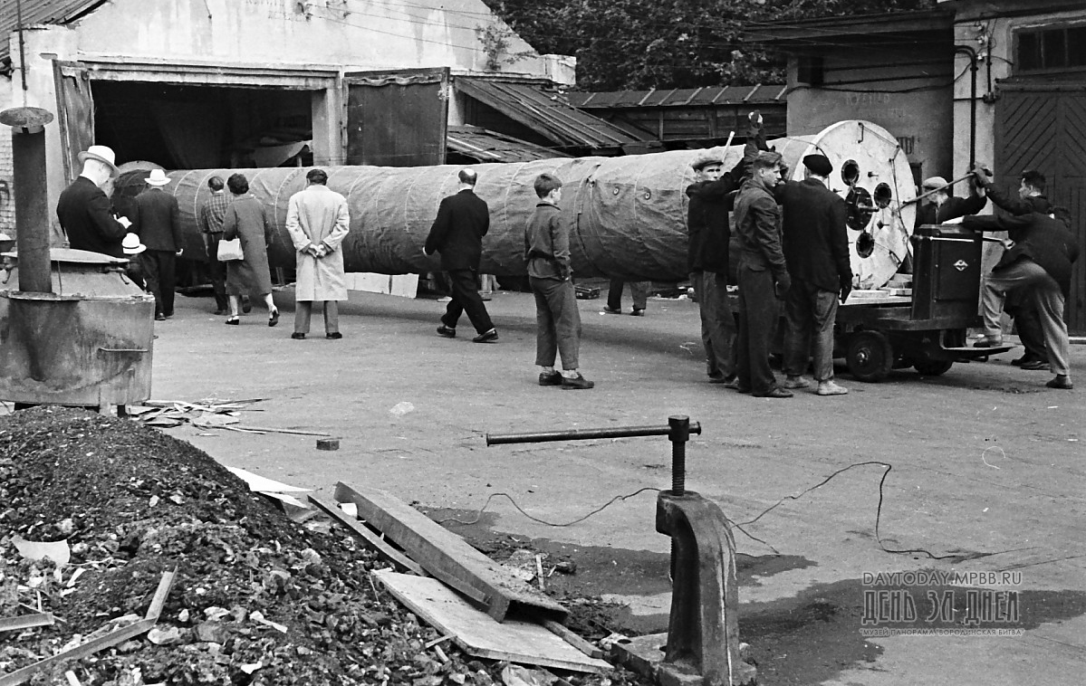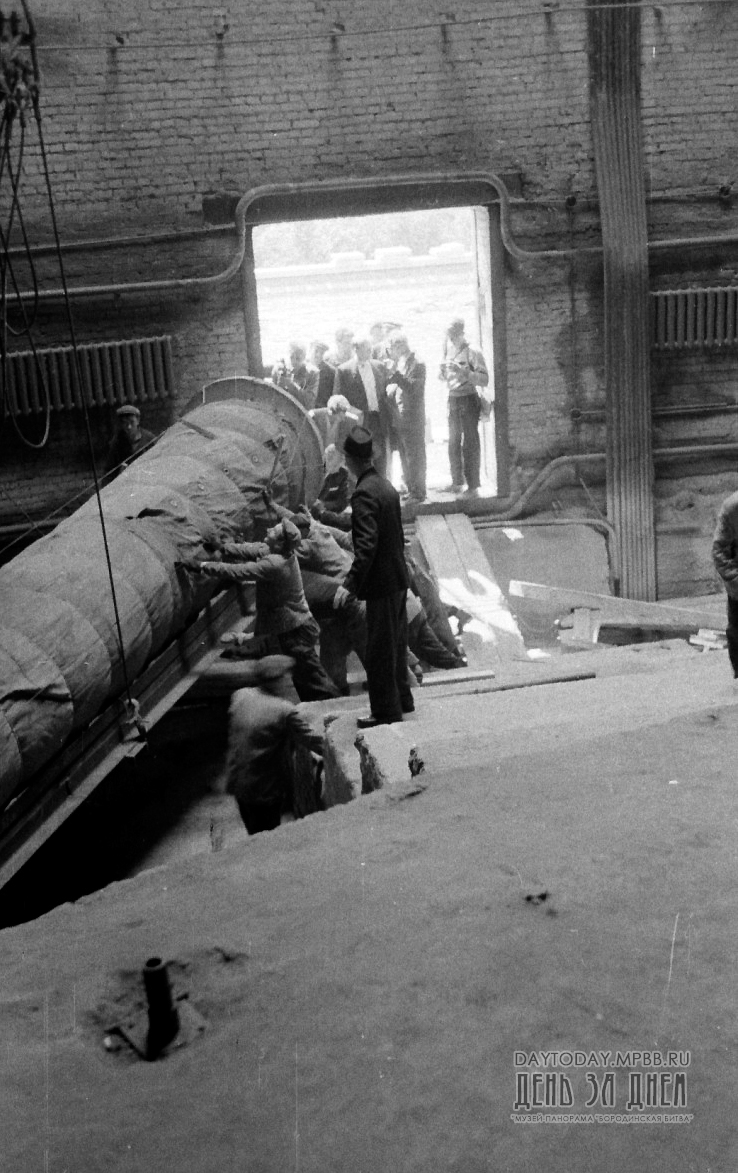 Вот как вспоминал об этом событии глава комиссии по восстановлению панорамы «Бородинская битва» Н.Д. Миронов: «Дождливая погода, стоявшая тогда в Москве, сильно мешала нам в работе. Все было подготовлено к перевозке, и мы нетерпеливо ожидали погожего дня.