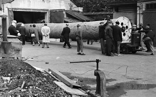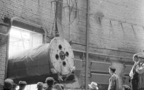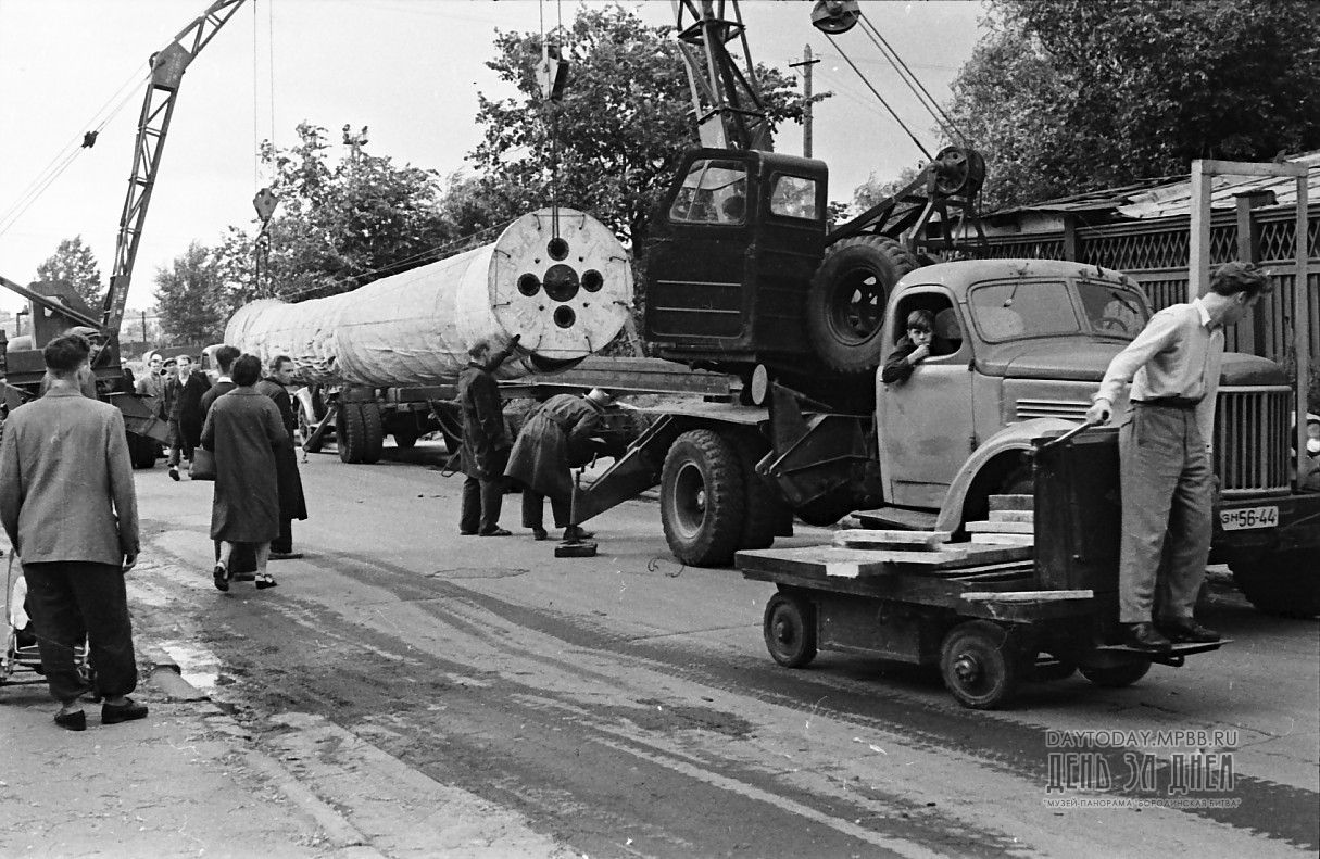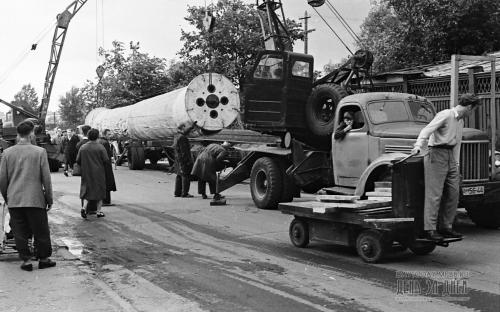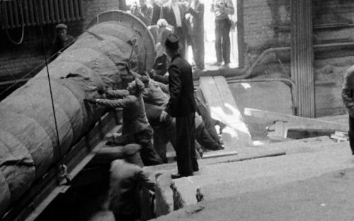 Такелажники бригады В. Тушкевича по четкой команде механика накатывают на электрокары вал, укрепленный стальными тросами, и вывозят его на улицу. Трехтонные краны поднимают упакованную панораму и осторожно укладывают ее на специальную раму, изготовленную из швеллера, а затем водружают на мощный автолесовоз.