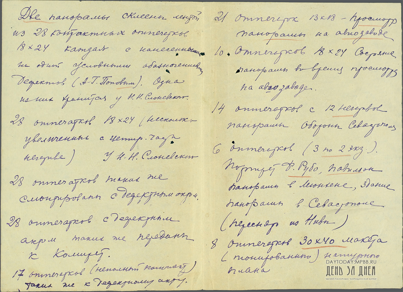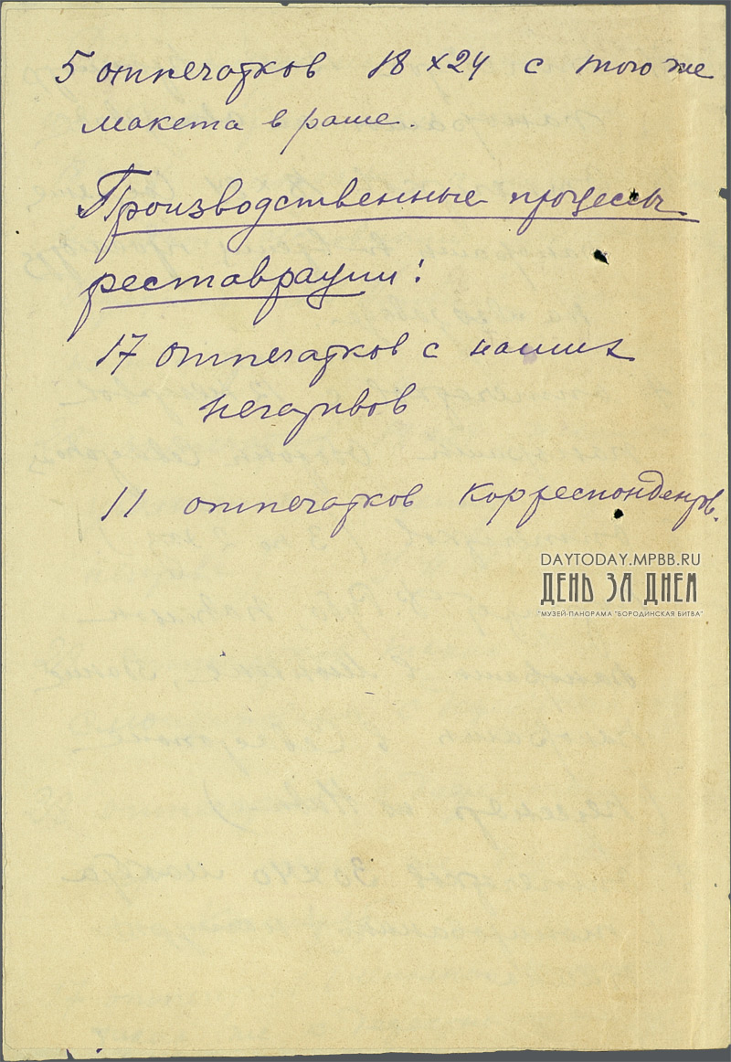 Опись фотоотпечатков по реставрации панорамы Ф. Рубо «Бородинская битва»