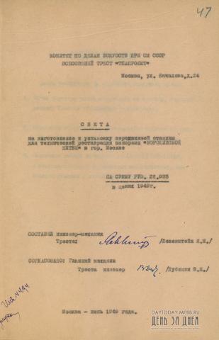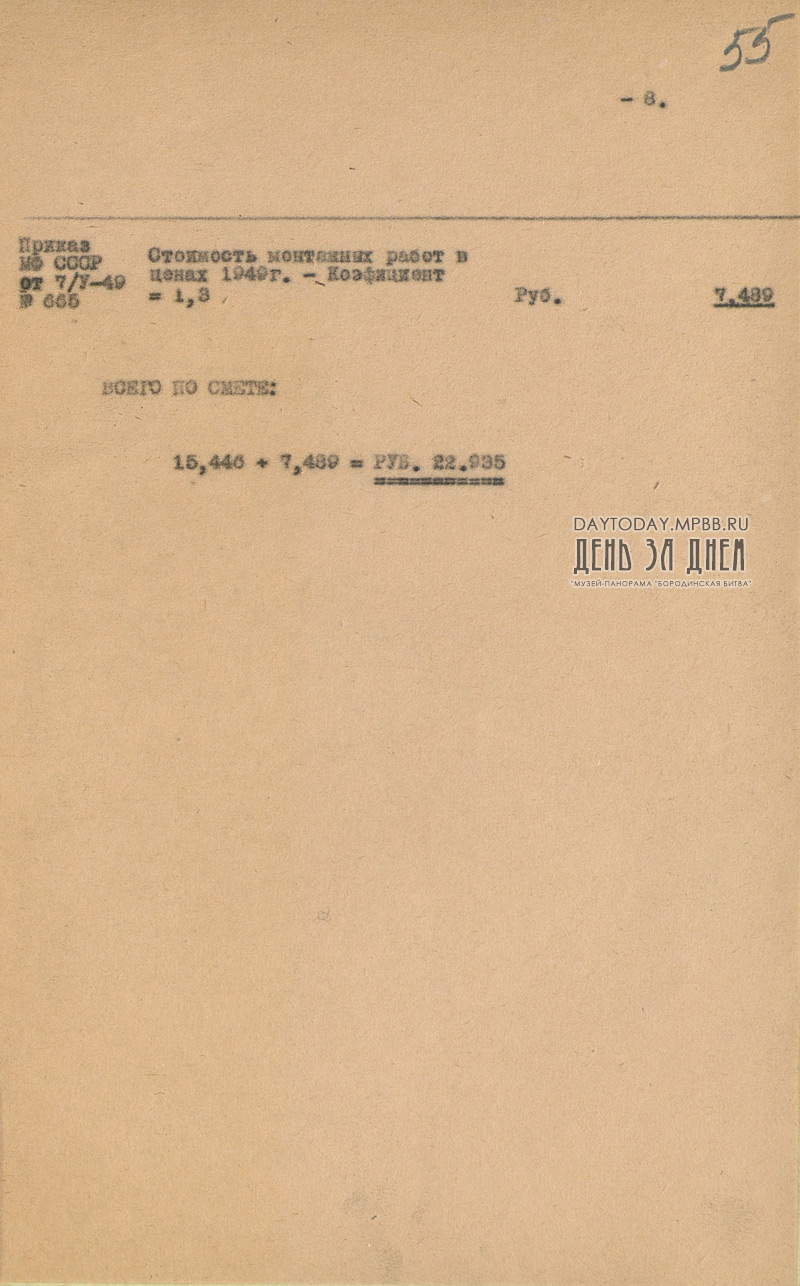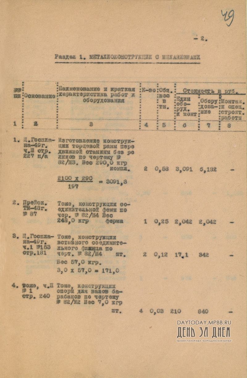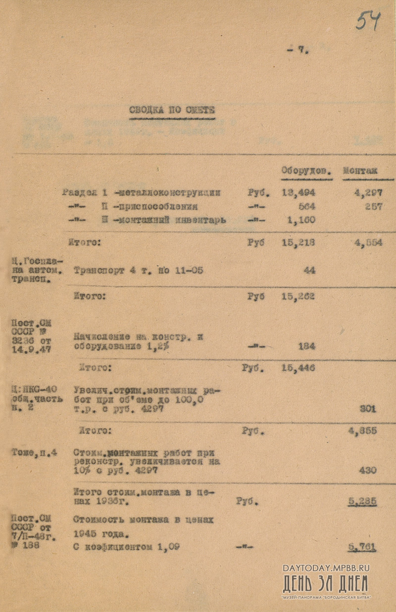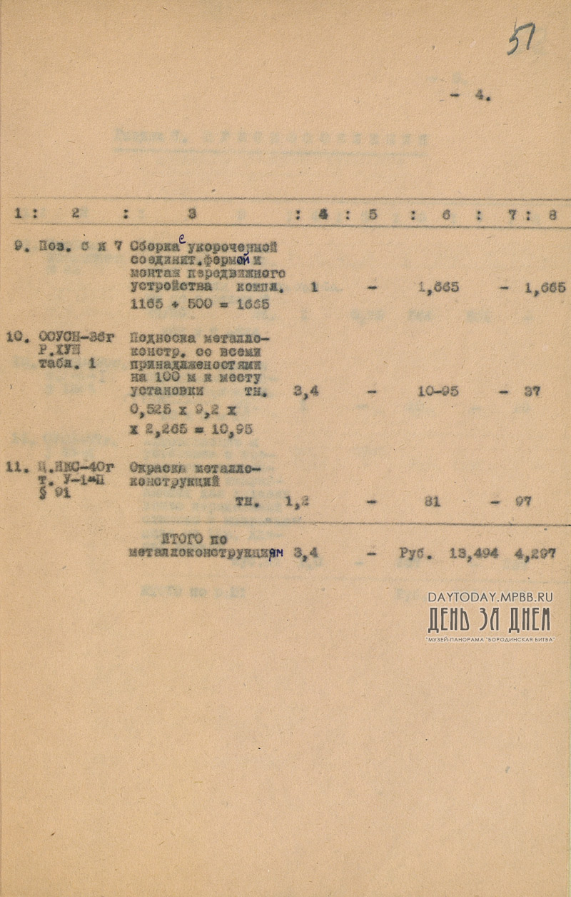 Смета на изготовление и установку передвижной станины для технической реставрации панорамы «Бородинская битва»