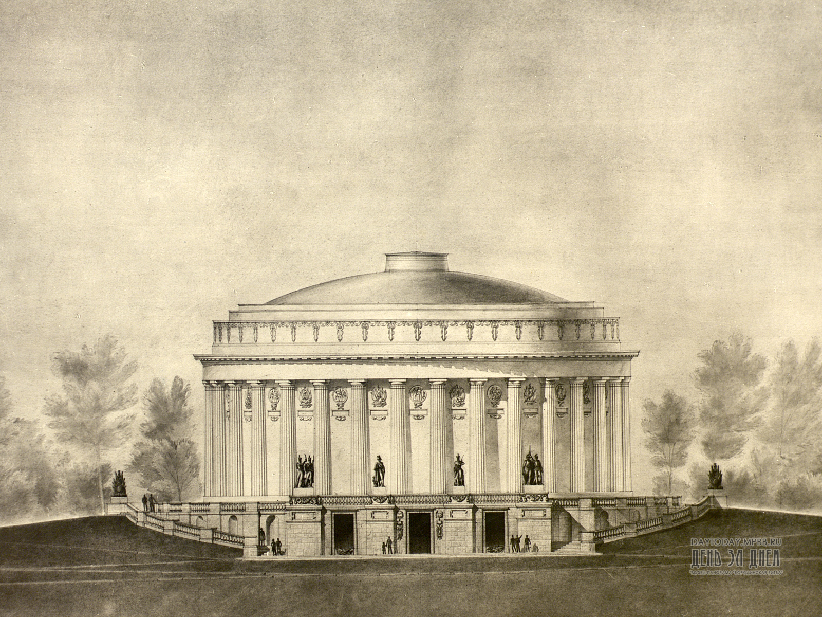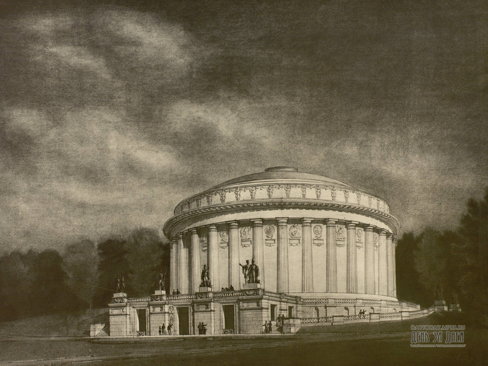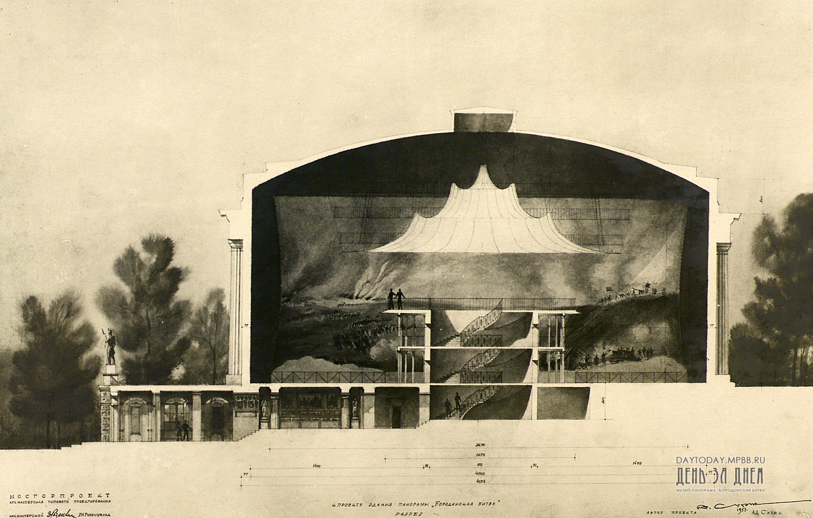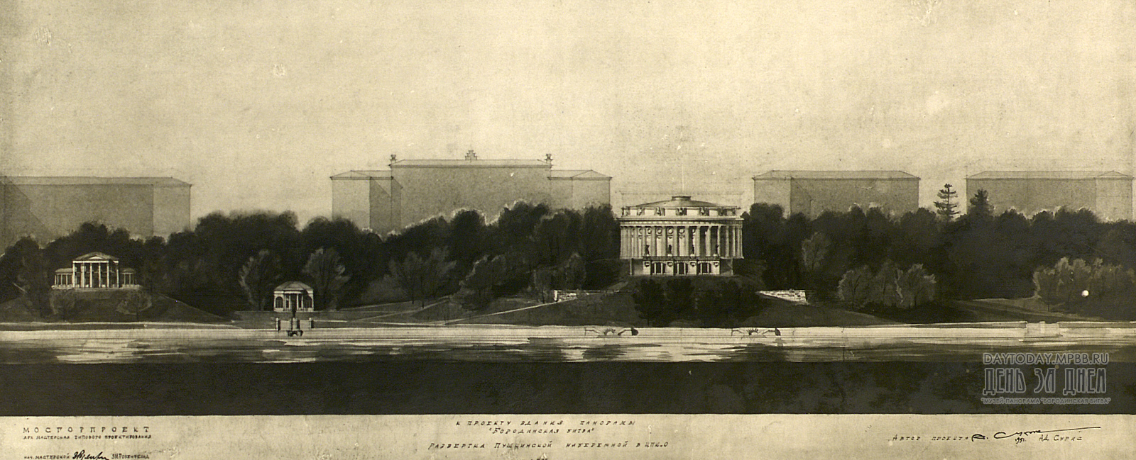 Одновременно с восстановлением холста решался вопрос о постройке здания для панорамы. Музею отвели участок Нескучного сада на берегу Москвы-реки, расположенный рядом с Парком культуры и отдыха имени А.М. Горького.