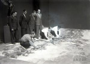 Состав бригады художников-реставраторов остался тот же, что производил техническую реставрацию панорамы: П.Д. Корин (руководитель), М.Ф. Иванов-Чуронов, К.А. Фёдоров, С.Я. Бабкин и М.Н. Махалов.