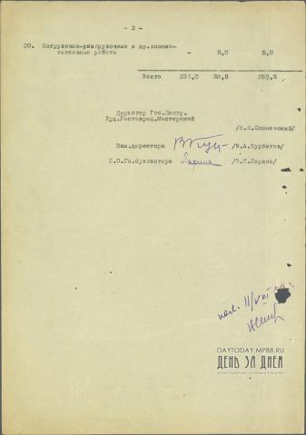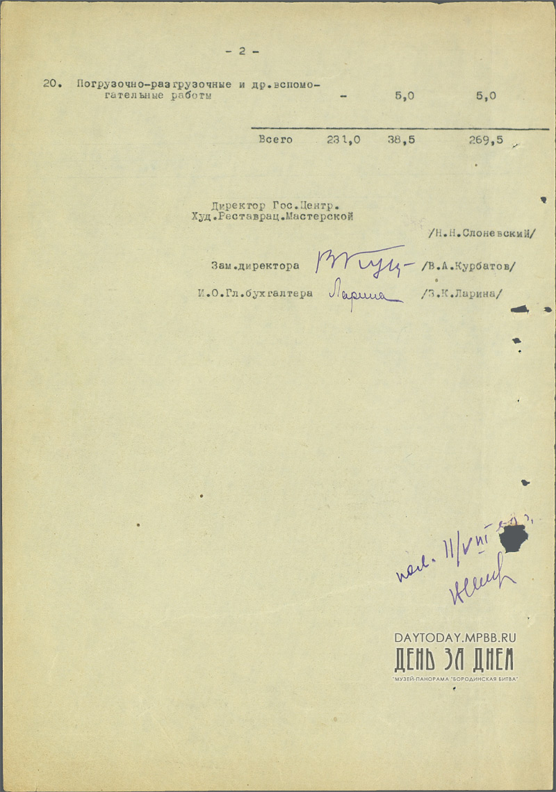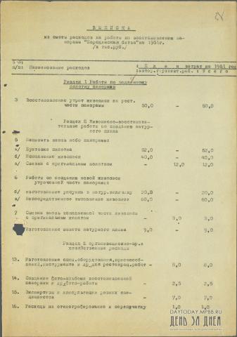 Выписка из сметы расходов на работы по восстановлению панорамы «Бородинская битва» на 1951 год