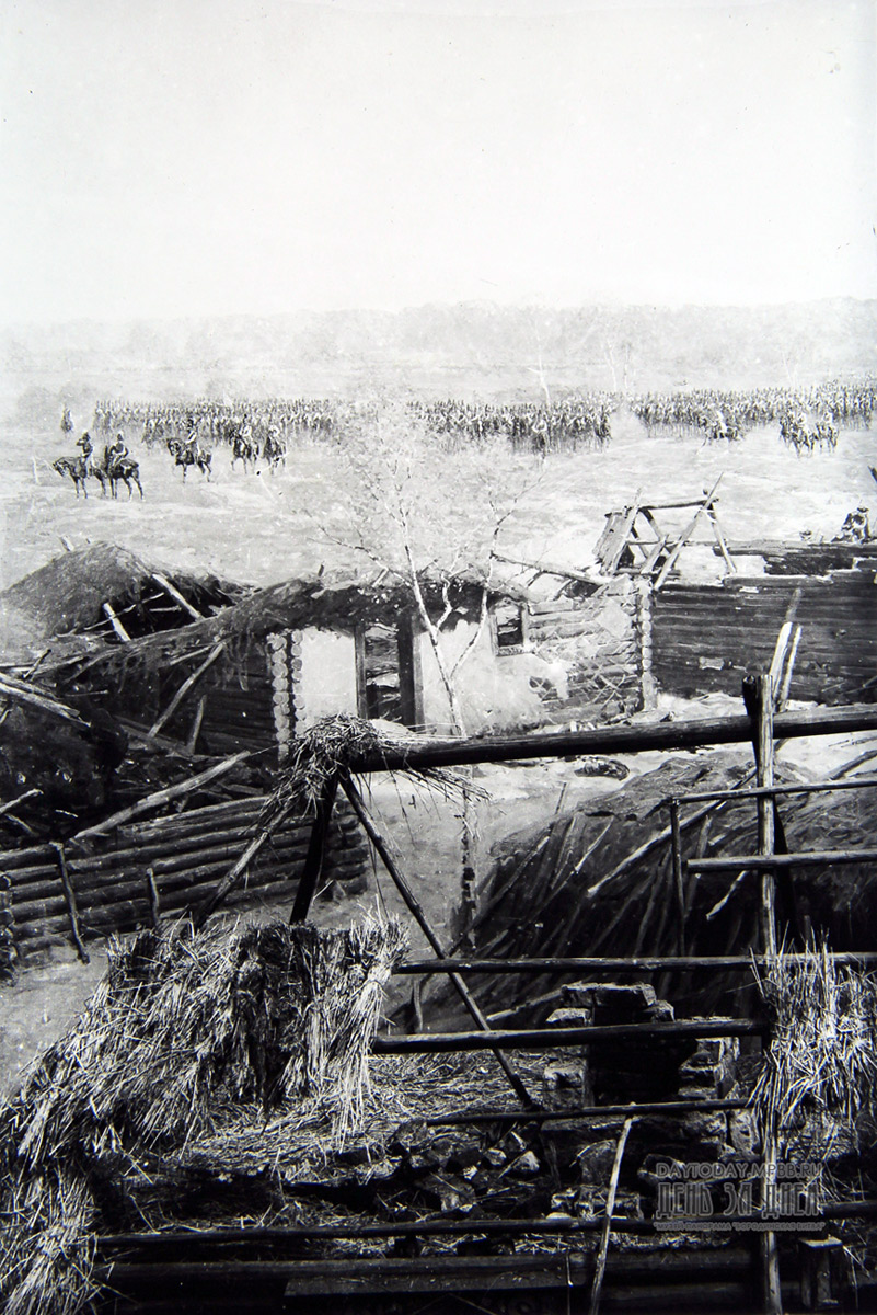 По результатам внешнего осмотра накатанной на вал панорамы комиссия установила, «что на концах панорамы холст сильно истлел. На одном конце панорамы обнаружены три, на другом шесть оборотов холста, что вызвало у членов Комиссии сомнение в наличии на валу всей композиции панорамы. Для проверки числа оборотов холста по единогласному решению Комиссии был сделан небольшой разрез в середине панорамы, в результате чего оказалось возможным определить 31-32 оборота холста с живописью. Это доказывает наличие на валу основной части панорамы размером около 100 метров в длину; кроме того разрез дал возможность определить, что в средней части панорамы сохранность живописи и связь её с холстом относительно удовлетворительная». Кроме того «простукивание по всей длине вала дает возможность предположить, что сохранность панорамы фрагментарная, не одинаковая в различных частях панорамы».